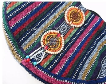 素材: 外側:綿、内側:綿、木製ビーズ、ガラスビーズ、ターコイズビーズ