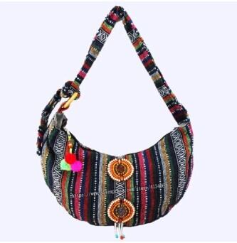 LOVERSEW ヴィンテージ モン族 トライバル ハンドバッグ ヒッピー エスニック インド トートバッグ ポンポン ビーズ ALX